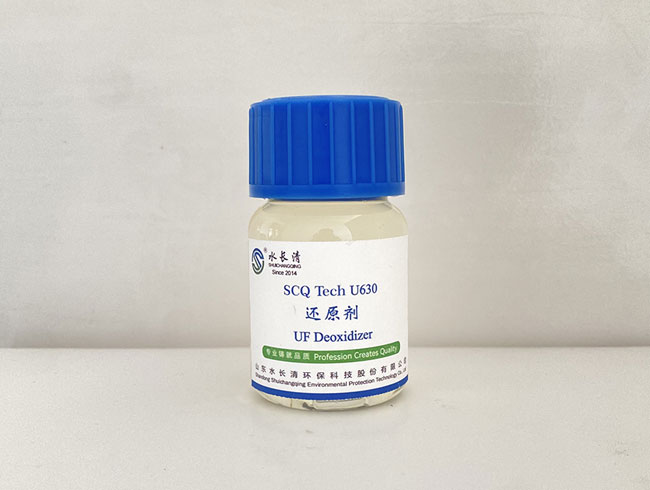 SCQ Tech U630 is a special reducing agent designed for oxidizing substances (e.g. residual chlorine, ozone) in the feed water of ultrafiltration (UF) system. It eliminates oxidizing components through rapid reduction reaction, prevents irreversible oxidizing damage of the membrane element and prolongs the service life of UF membranes, and is suitable for the membrane protection of chlorine-containing disinfection systems, such as municipal water reuse and seawater desalination pre-treatment.