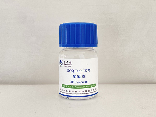 SCQ Tech U777 is a special flocculant developed for the pre-treatment of ultrafiltration (UF) system feed water. It can rapidly remove suspended solids, colloids and some soluble organic matter in water through electro-neutralization and adsorption bridging, reduce the risk of fouling of ultrafiltration membrane and increase the flux of produced water, and it is suitable for the pre-treatment of complex feed water scenarios such as high-turbidity surface water, industrial wastewater and so on.